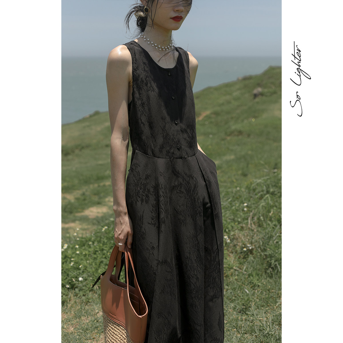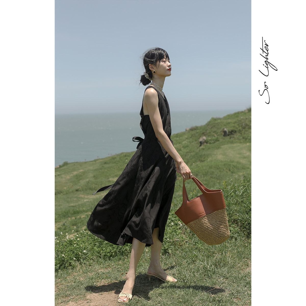 solighter vest suspender dress temperament sleeveless green thin exposed clavicle beauty back long dress 2021 summer