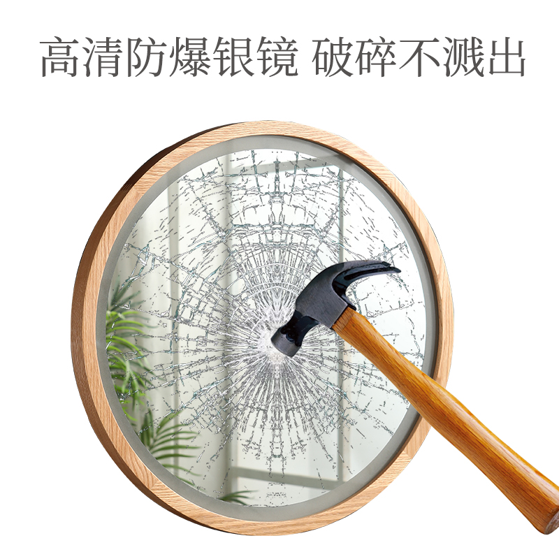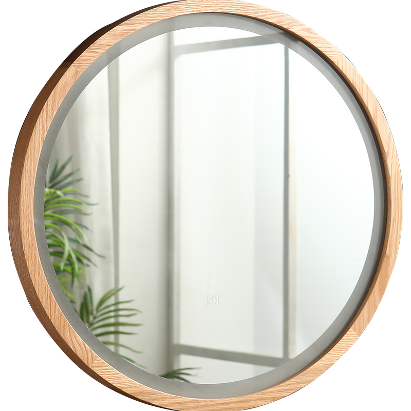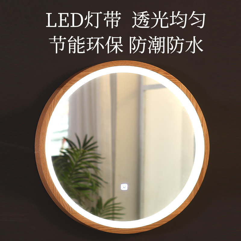 Home Nordic simple round mirror Full solid wood bedroom wall-mounted LED smart light Bathroom powder room dressing makeup mirror