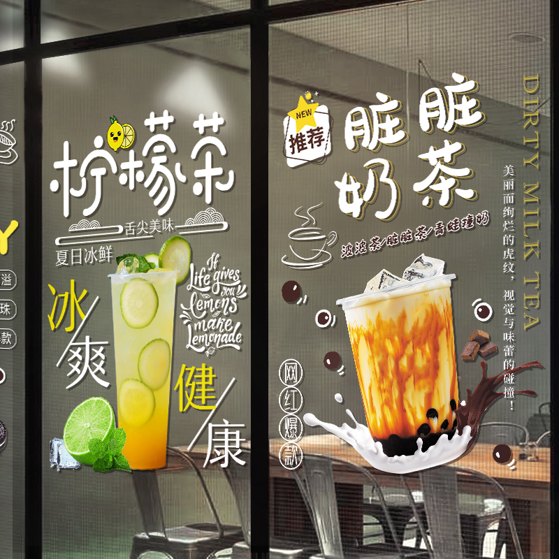 Milk Tea Shop Decorated Glass Door Sticker Creative Personality Fresh Press Lemon Juice Poster Welcome to the door