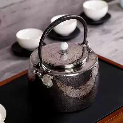 Dust Lu pure handmade silver pot silver kettle 9999 Silver pot lifting beam pot pure ml silver kettle one piece made