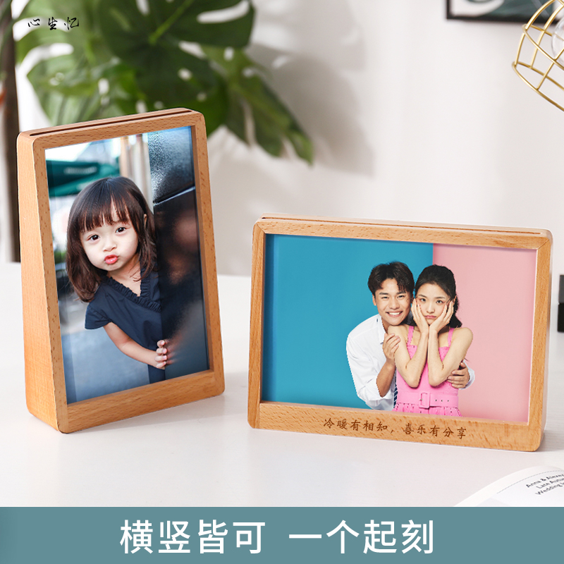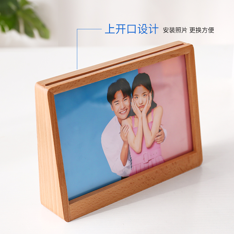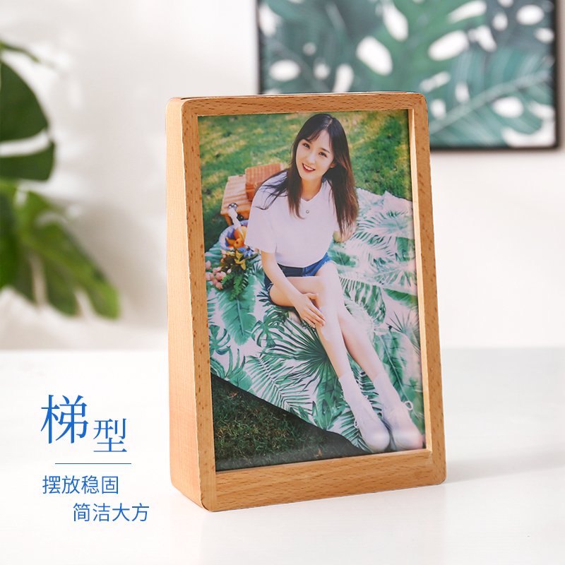 Simple trapezoidal beech photo frame creative solid wood table photo frame custom lettering wash photo custom logo