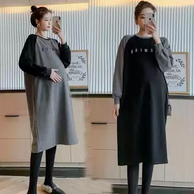 Pregnant women's clothes spring and autumn belly thin long sleeve T-shirt skirt medium and long version of large size 200kg spring dress pregnant women's dress