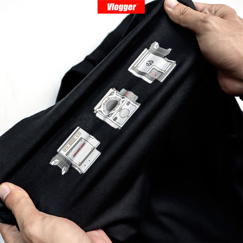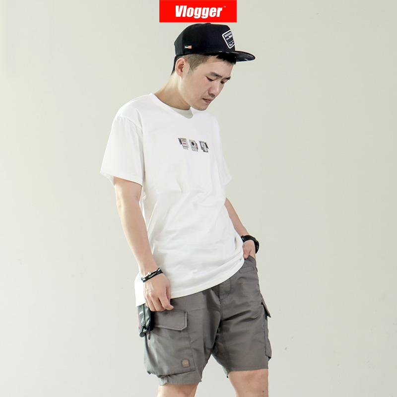 RED Triple View Photographer Pure Cotton Short Sleeve American Retro threaded mouth male and female Vlogger Guochao T-shirt Chen Wenjian