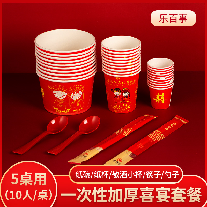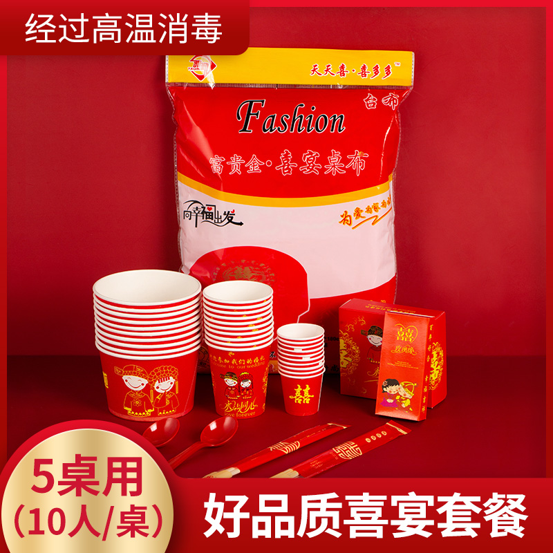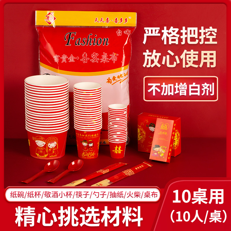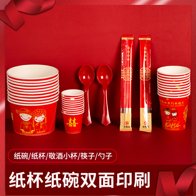 Disposable paper cups wedding wedding banquet wedding paper bowl toast small Cup chopsticks extraction toilet paper tablecloth Big Red Cup