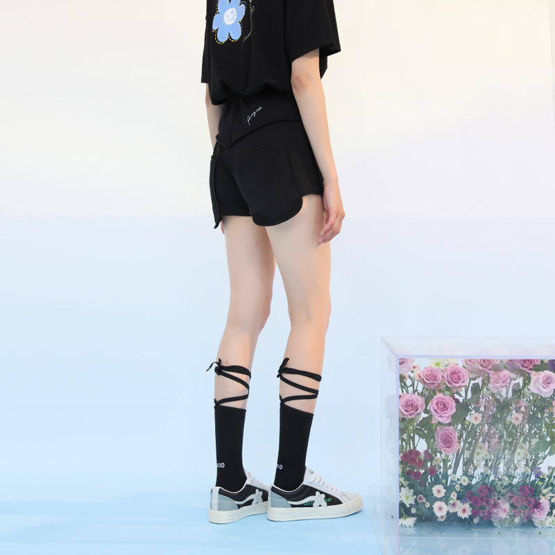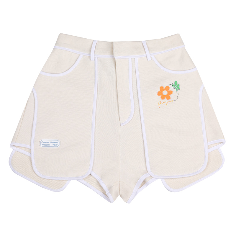 PCMY Flower & Bee Printing Tricolor Shorts Tide Female New Leisure Printing Female Student Lean Trousers