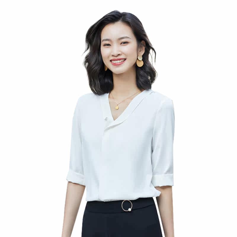 DEECAN fashion goddess Van Snow spinning blouses women 20 new Korean version of the Korean version white collar work professional shirt summer