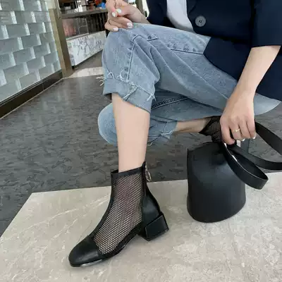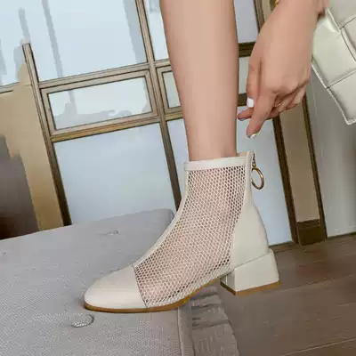 Booties Summer Breathable Thin Boots Women's Joker Single Boots Mesh Cores Hollow Comfortable Martin Boots White Soft Bottom Heels