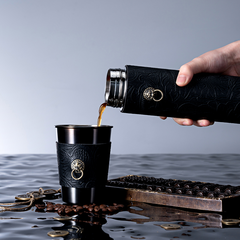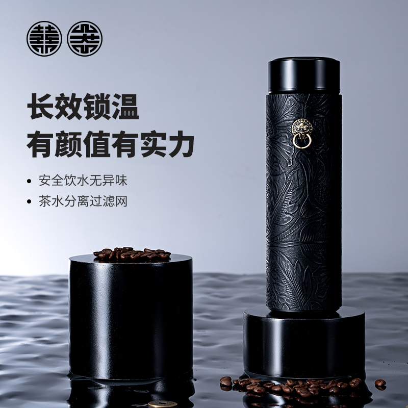 Happy first slaughtered bronze lion high-value thermos cup stainless steel water cup household business tea cup accompanying cup