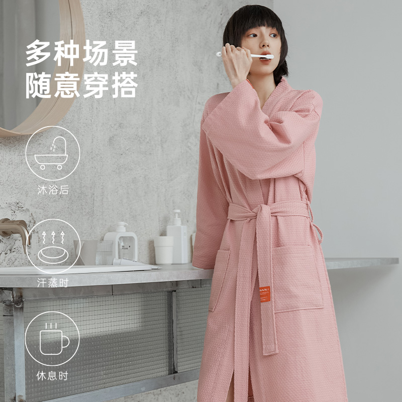 Dry hair hat pink waffle bathrobe coral red S dry hair hat pink waffle bathrobe business gray L dry hair cap pink waffle bathrobe Snow White M coral red-waffle style