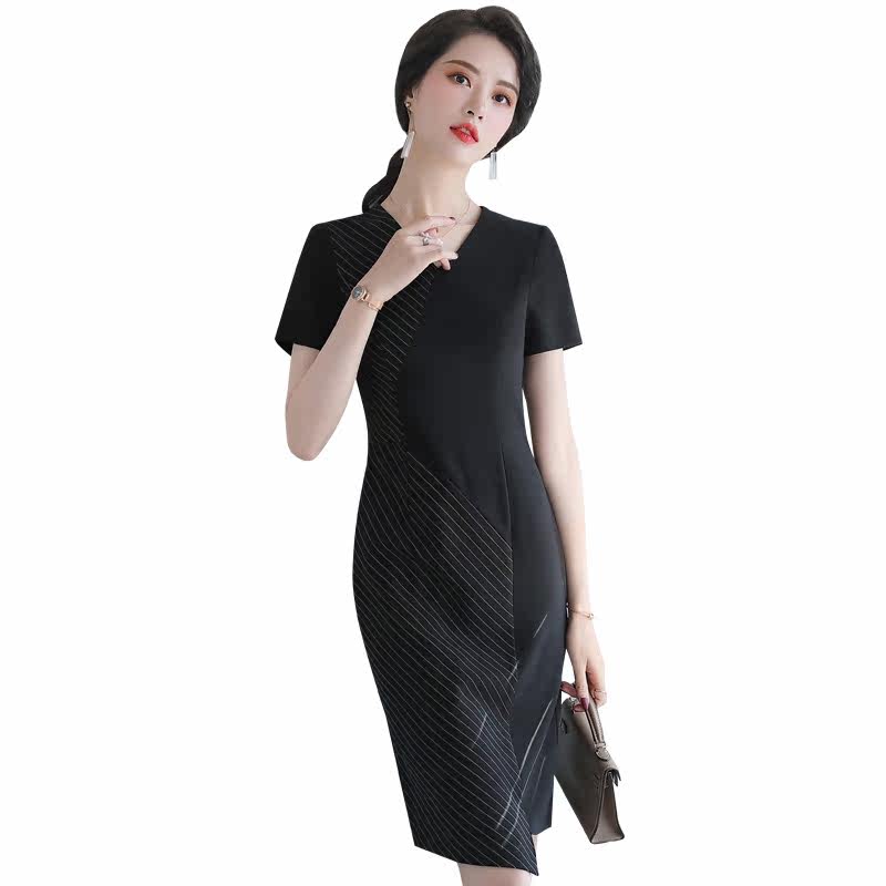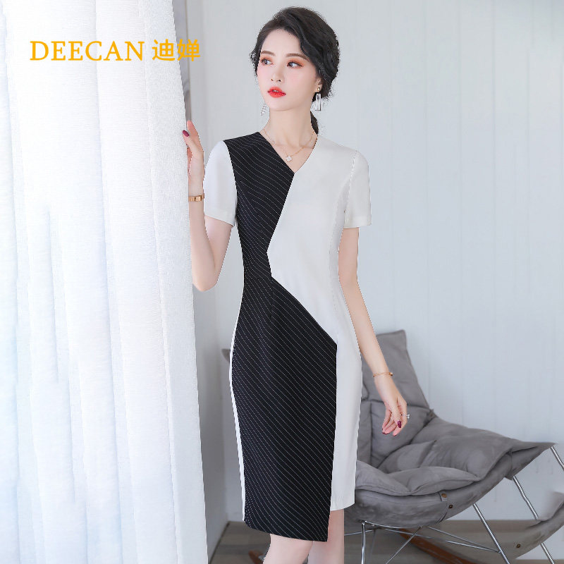 DEECAN High-end Female President Professional Foreign Dress Woman 2020 New Korean version of Slim V Collar Professional Skirt Summer