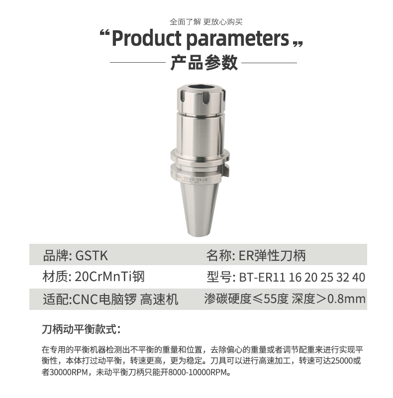 BT30 40 high-precision high-speed dynamic balance milling cutter handle ER16 20 25 32 70 100L machining center handle