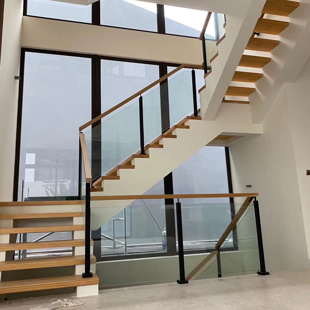 Factory direct sales non-perforated stainless steel railing column balcony tempered glass guardrail outdoor stair handrail modern