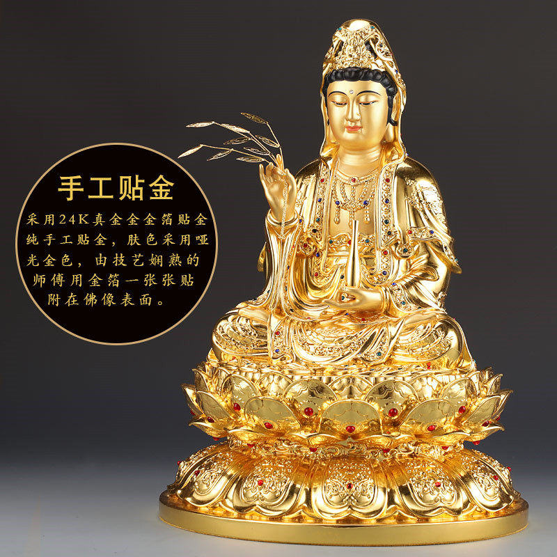 Taiwan paste gold pure copper Guanyin Buddha statue dedicated to household Guanyin statue Guanyin Bodhisattva Guanyin Bodhisattva ornaments