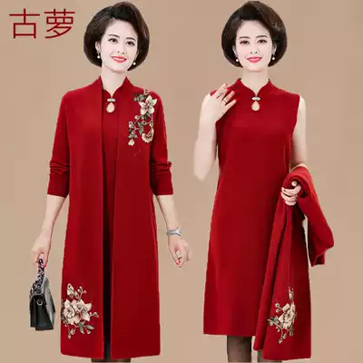 The mother-in-law dress to participate in the wedding dress autumn and winter dress wedding banquet daughter cheongsam outside suit parents wear clothes
