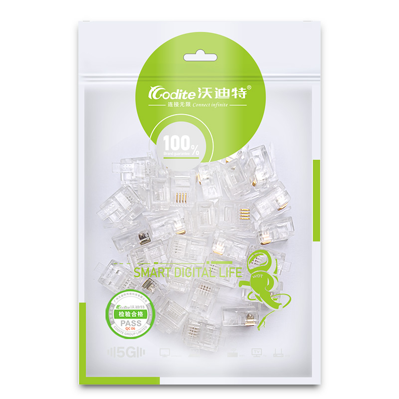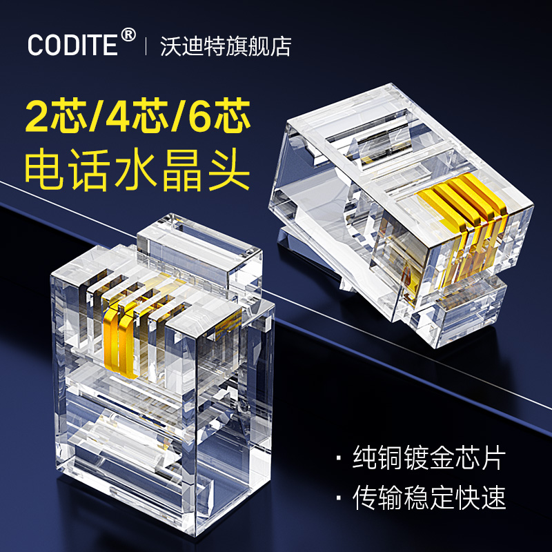 Vodite Phone Crystal Head 2 Core 4 4 Phone Block Machine Fax Machine Connection Machine 6p2c4c6c Joint 4P4C