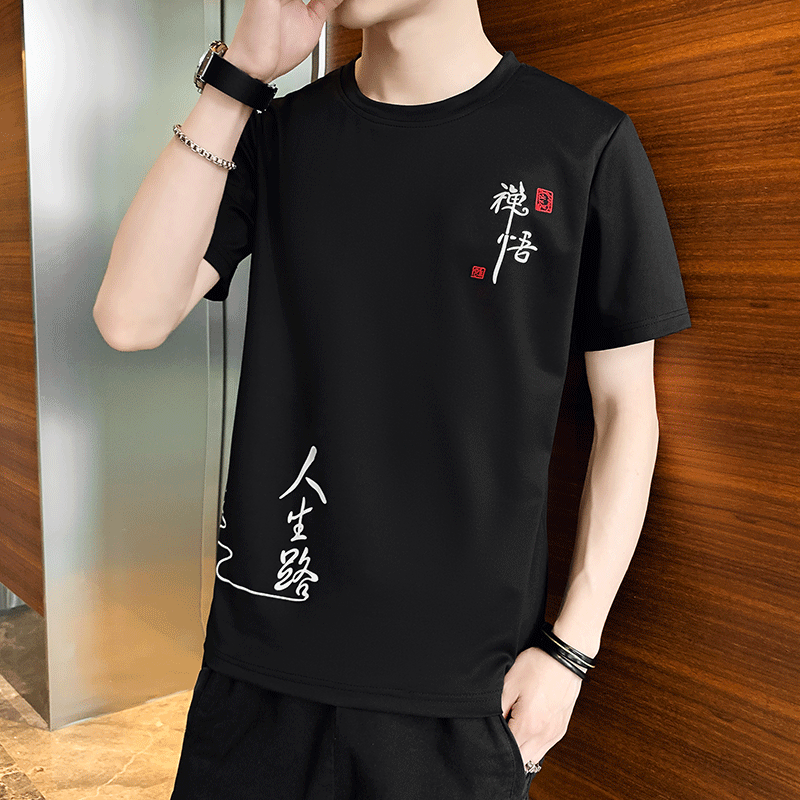 2-pack of hot red star domestic products national tide ice silk short-sleeved T-shirt men's summer thin section national style life road Zen enlightenment T-shirt