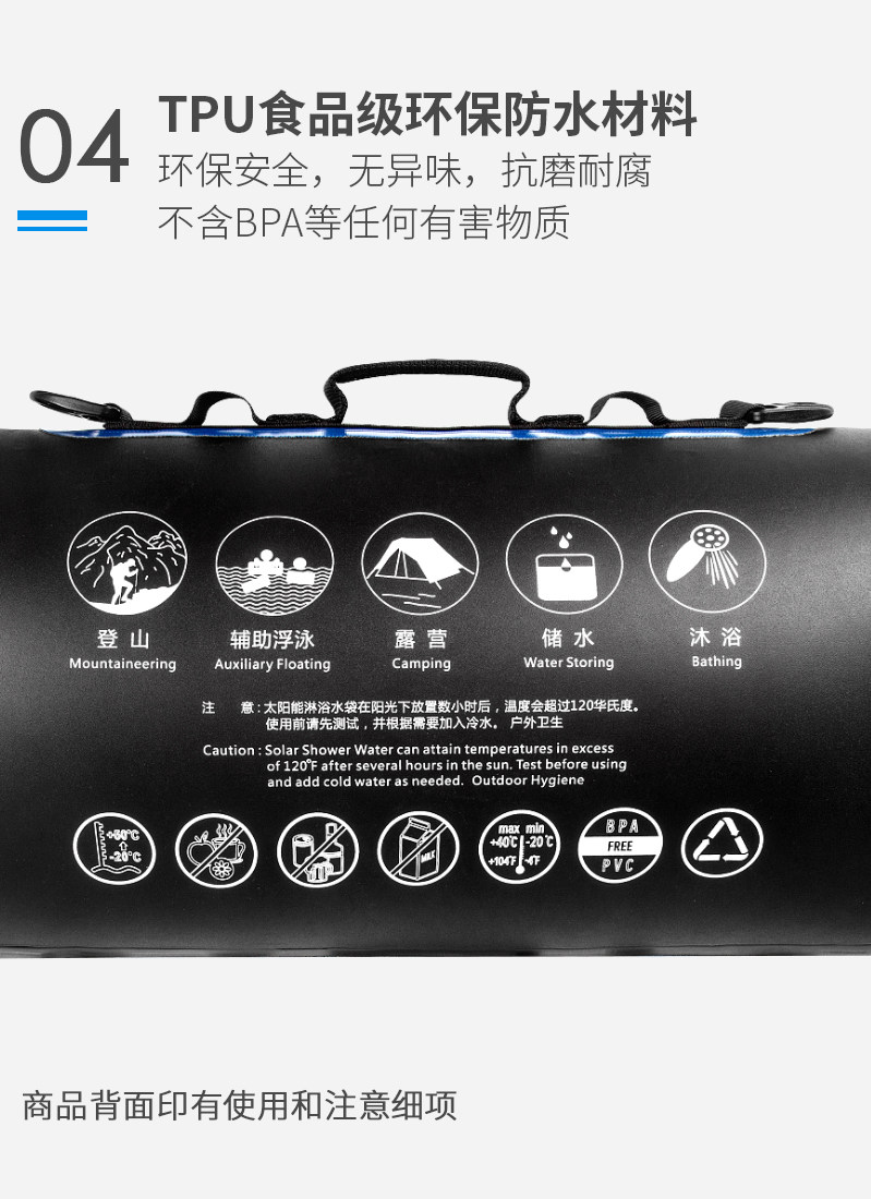 Outdoor bath artifact bath bag solar sunbathing bath bag camping picnic water storage bag portable bath bag