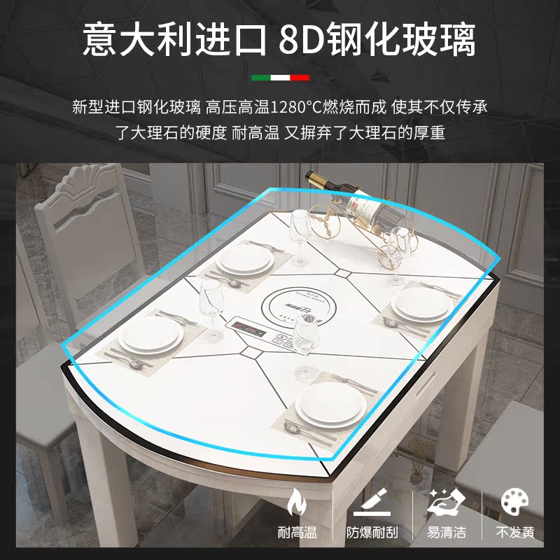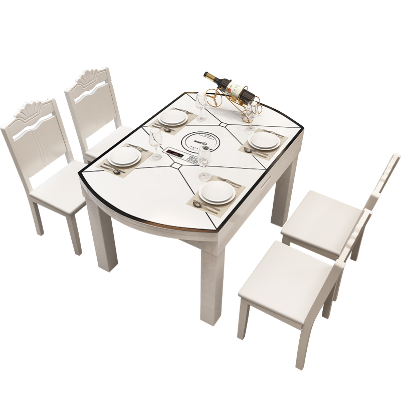 Dining table and chairs Combined modern minimalist home small household type solid wood telescopic folding rice table Round table square-purpose dining table