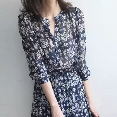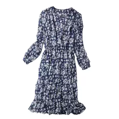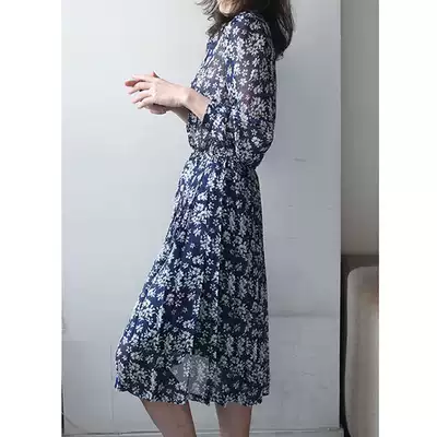 mularsA dress 2021 New Summer Lady temperament thin elastic waist half open collar chiffon floral skirt