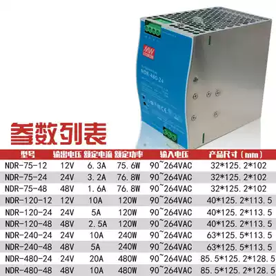 NDR Taiwan Mingwei 480W rail switching power supply 220 to 24V12V48V DC 75 120W transformer