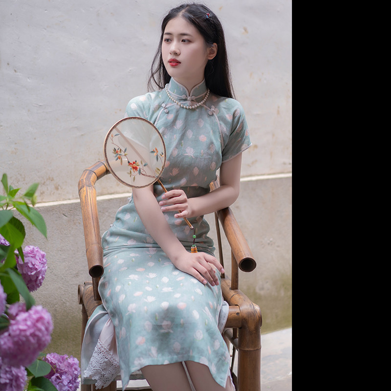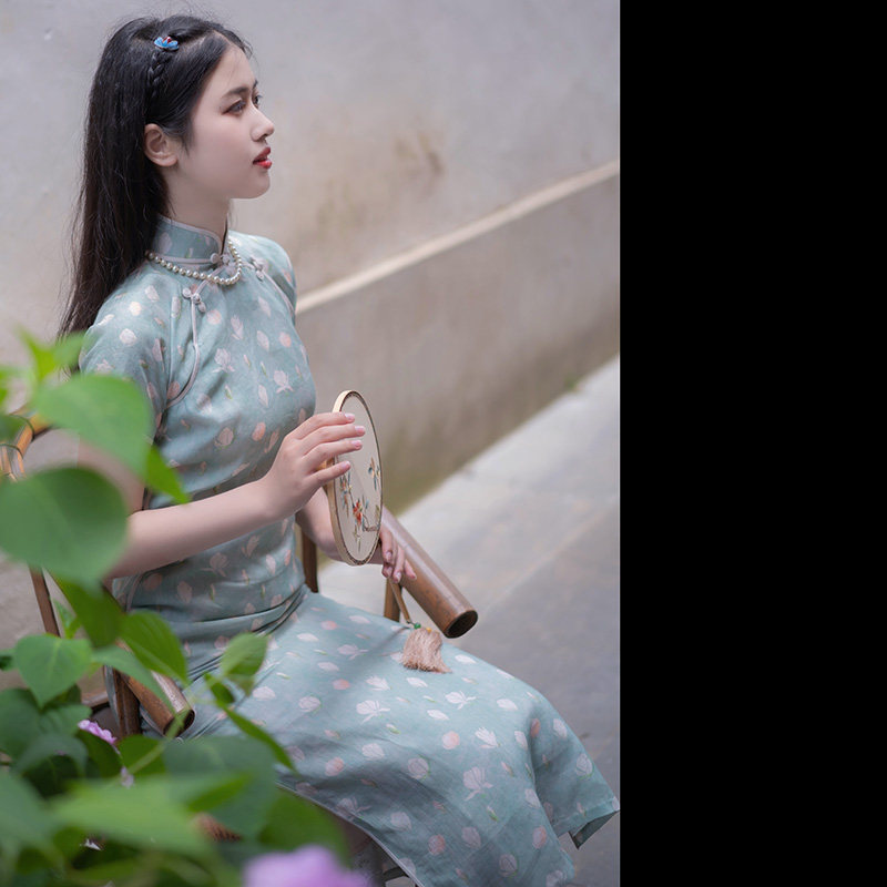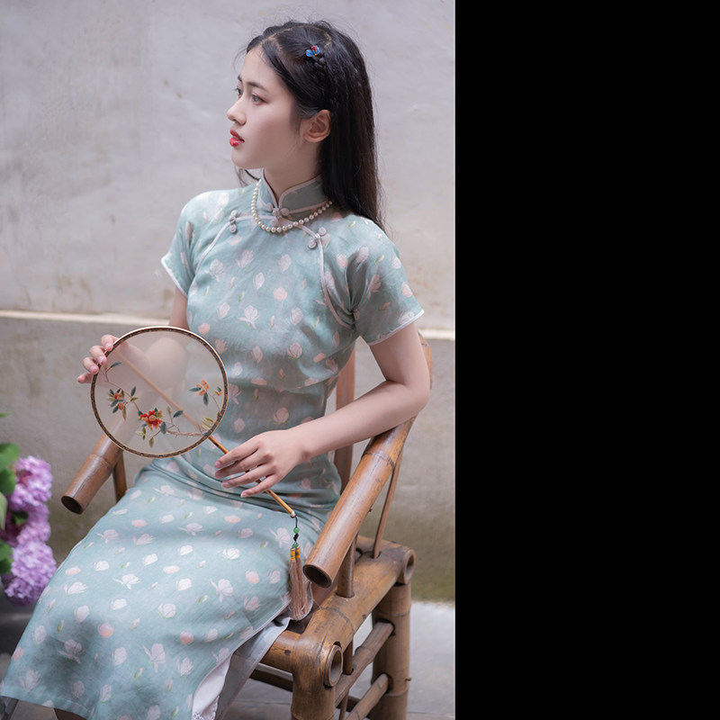 Xiao Yu Jasmine ) The ancient Chinese style of the ancient manganese jasmine printed double palm of the long banner