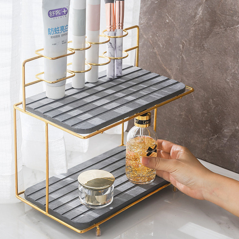 Powder room bathroom electric toothbrush rack Storage rack Simple table wash table desktop free hole storage box