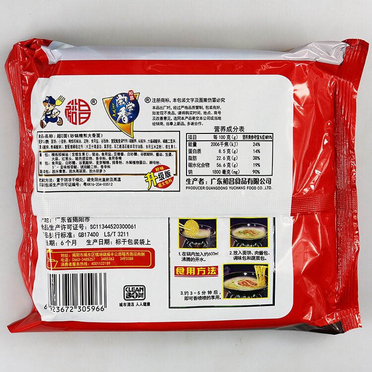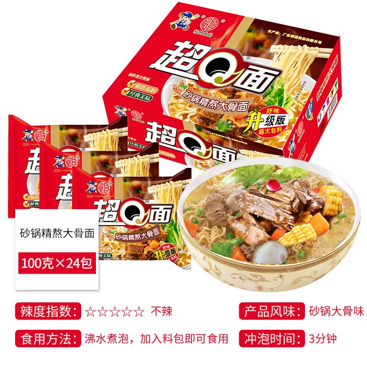 Yuchang Super Q-face Casserole boiled big bone noodles Whole box bagged instant noodles Instant noodles Nostalgic dry noodles Instant noodles