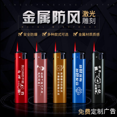 Advertising windproof lighter custom-made printing batch high-grade metal frosted disposable lighter hotel lettering tide