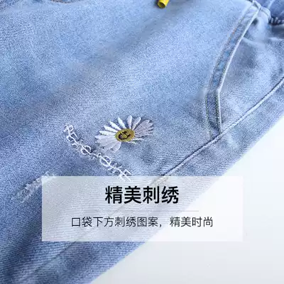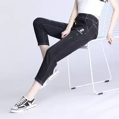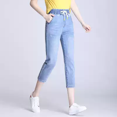 Eight-point pants women Summer thin small elastic waist loose big size fat mm seven points Haren pants jeans 200 Jin