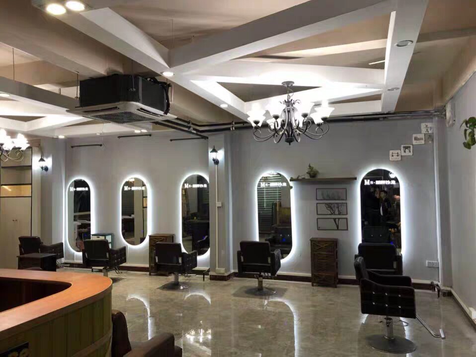 Net red three-sided mirror folding one custom European simple hair mirror touch LED light mirror management shop mirror