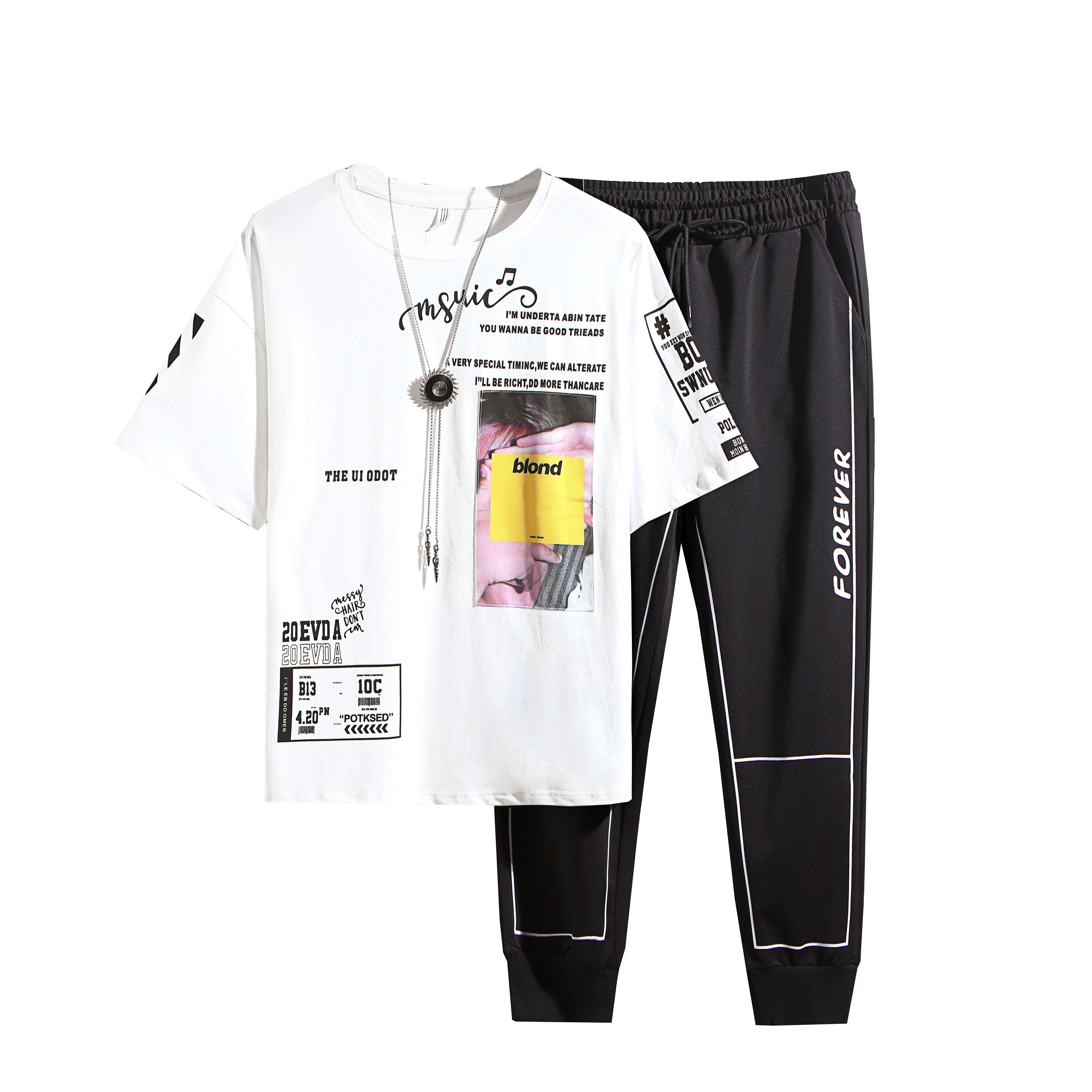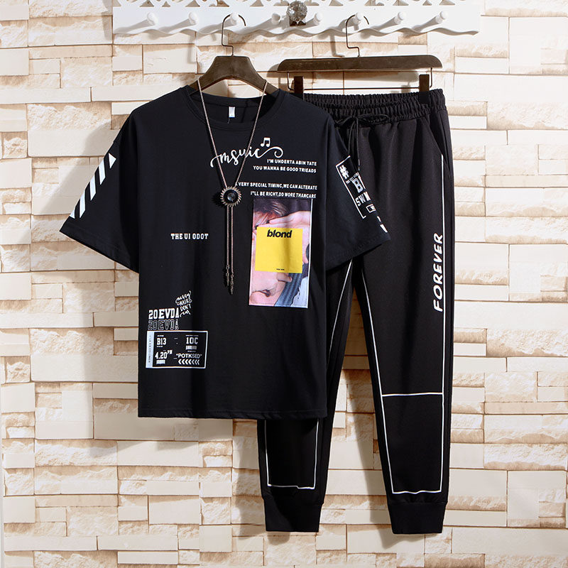 Leisure sports set 2021 summer men's short-sleeved T-shirt with trendy student trendy brand ins handsome clothes - Taobao