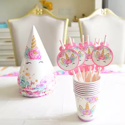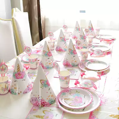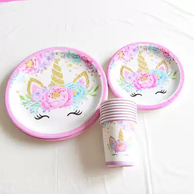 Unicorn theme dinner plate Baby birthday decoration scene decoration girl disposable dinner plate children kindergarten