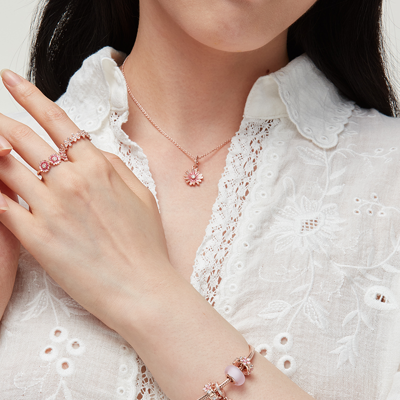 Pandora Pandora Rose romantic daisy necklace set ZT0722 pink light luxury temperament women