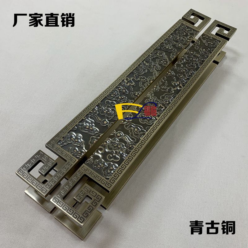 Luxury new Chinese antique door handle Xiangyun carved glass door handle bronze wooden door handle double switch solid