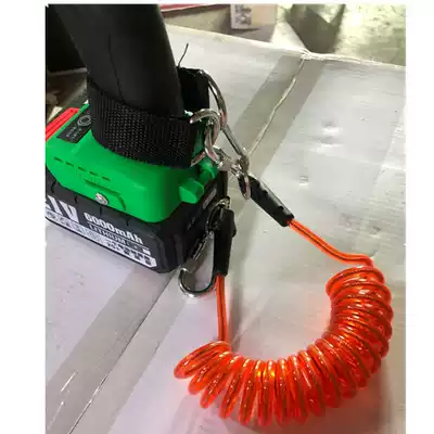 Electric screwdriver safety rope 360deg rotating electric wrench anti-fall off with spiral buckle steel wire high-altitude anti-fall rope
