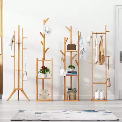 Simple hanger Floor-to-ceiling bedroom solid wood hanger multifunctional coat rack storage hanging clothes rack Simple and modern