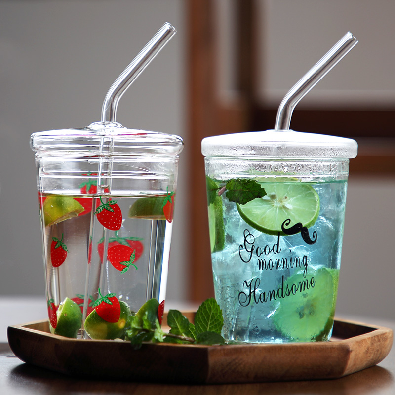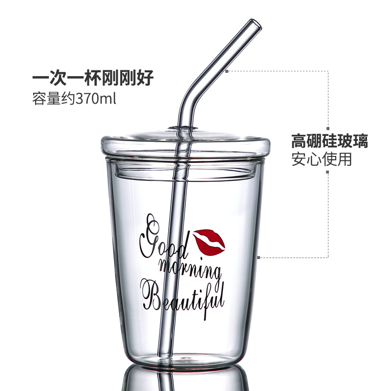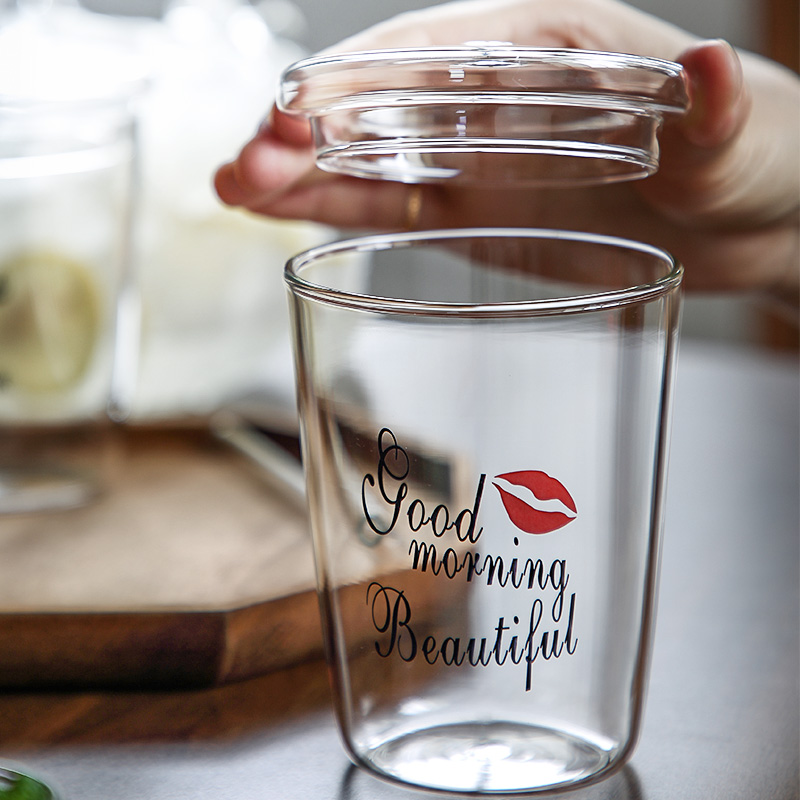 Cute children's milk cup oatmeal Cup breakfast cup with lid portable large capacity drink milk teacup glass Sipha Cup