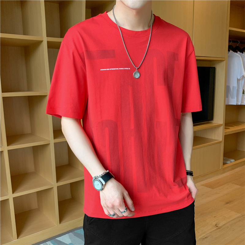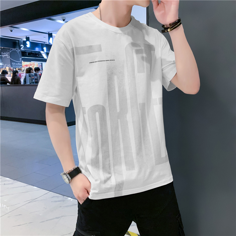 Tide brand summer short-sleeved T-shirt men's Korean version of the trend ins round-neck cotton top loose large size casual half-sleeve T-shirt