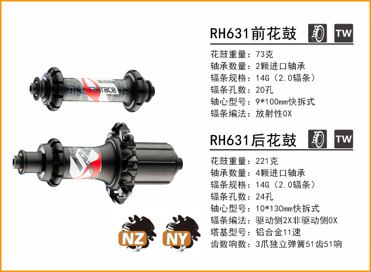 3-claw independent spring 51 ring imported Peilin ultra-light road hub straight head 20 24 hole straight pull Taiwan origin