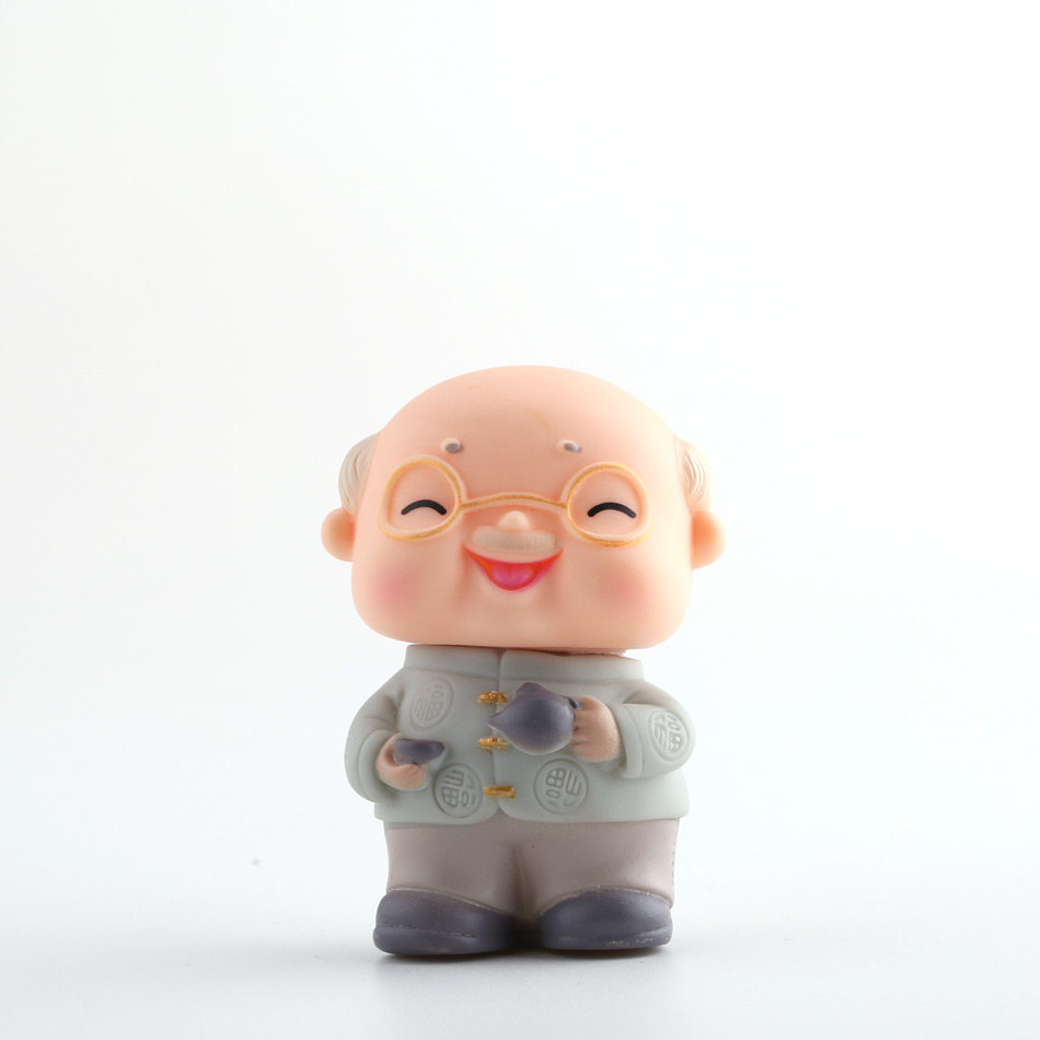 Birthday Baking Cake Swing Piece of Enamelling Tea Old Grandpa Holding Cat Old Grandma Cake Decoration Swing