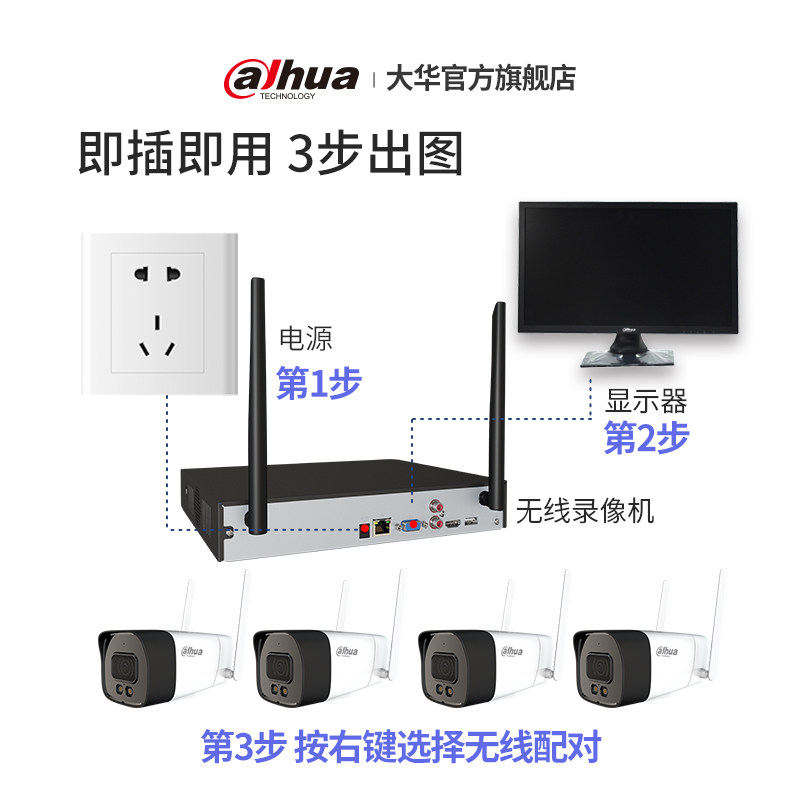 Dahua wireless monitor equipment HD set remote mobile phone 4ch night vision full color outdoor camera