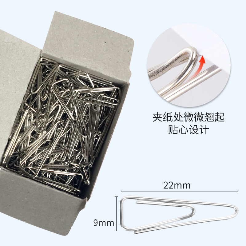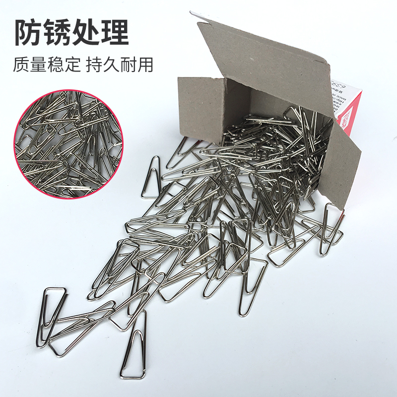 (10 boxes=1000 pieces)Deli 0051 Paper clip Triangle paper clip thickened steel core Nickel plated metal antirust office supplies Stationery