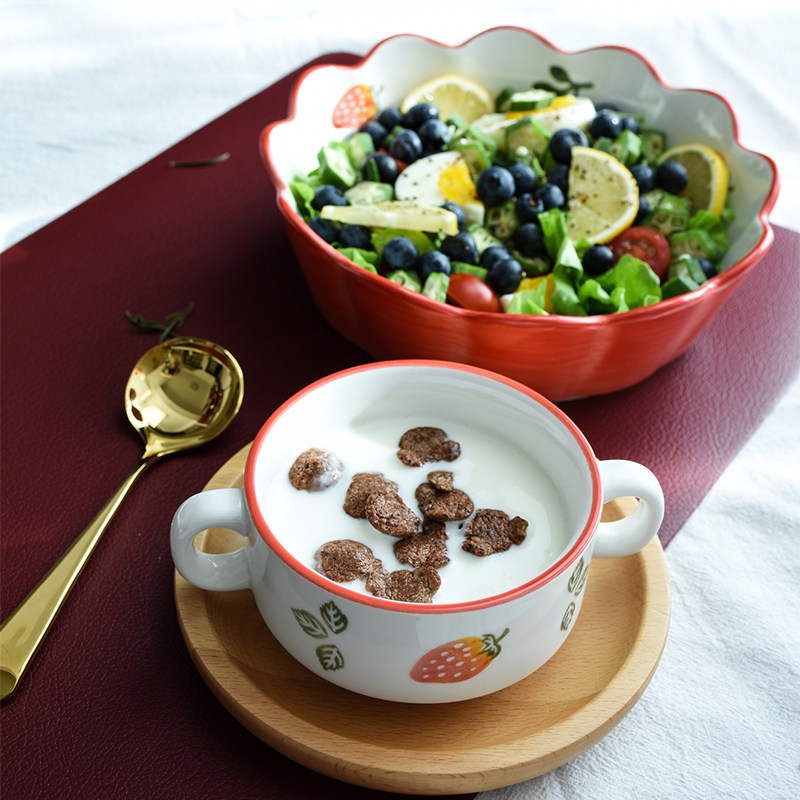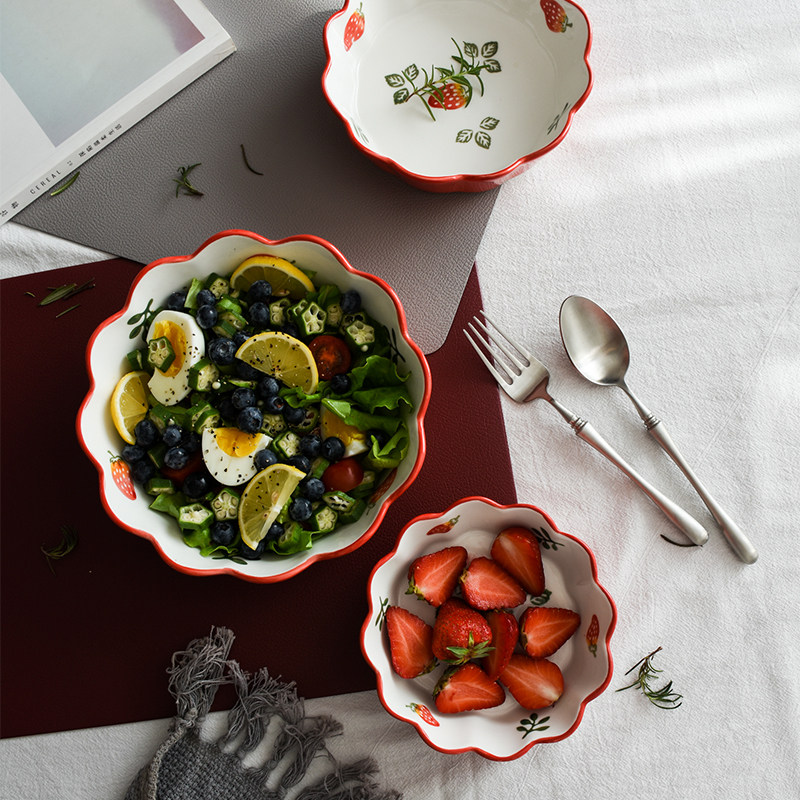 Creative Strawberry Salad Bowl Breakfast Dessert Bowls Fruit Refreshment Bowls Home Ceramics Thickened Heat Resistant Bowl Soup Porridge Bowls