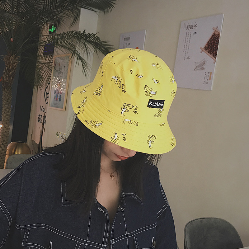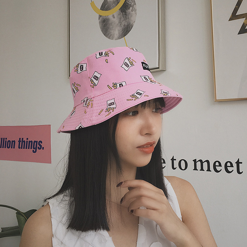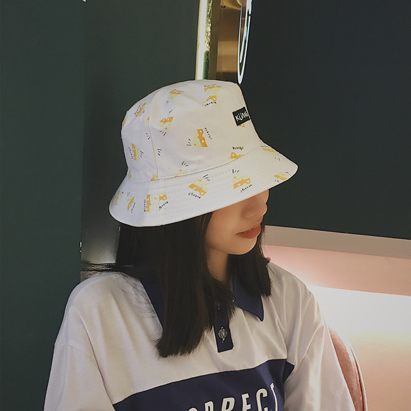 Cai Cai cartoon Double face with small head circumference fisherman hat Summer cute shade sunhat lady pelvic hat Tide Cards Little Crowdcap