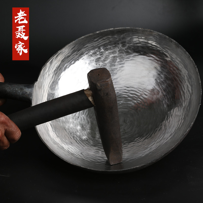 Double ears Zhangqiu non-stick pot traditional iron pot authentic old Nie family pure handmade old-fashioned frying pan household uncoated