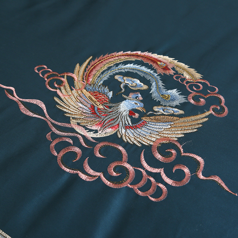 Wedding silk quilt cotton dragon and phoenix embroidery green happy quilt cover dowry summer quilt spring and autumn thickened 10 catties winter quilt