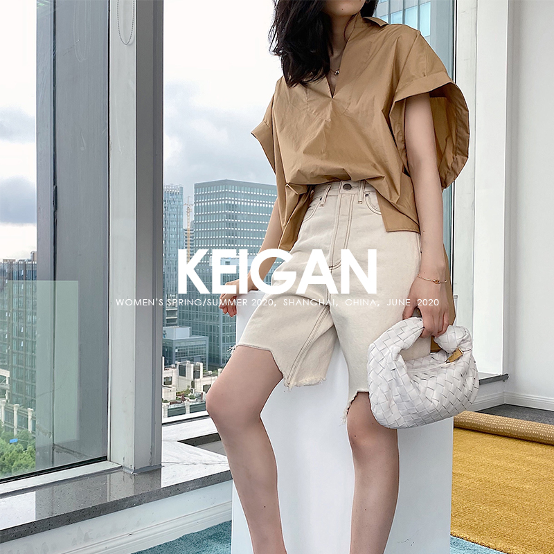 Inter-Opening Import Series Japan Ring Palate Organic Cotton GOTS certified summer large profile Flap Sleeves Shirt Woman Short Sleeve