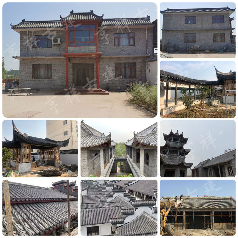 Antique green brick green tile ancient building floor wall surface brick roof facing courtyard wall decoration small tile standing tile flower window construction
