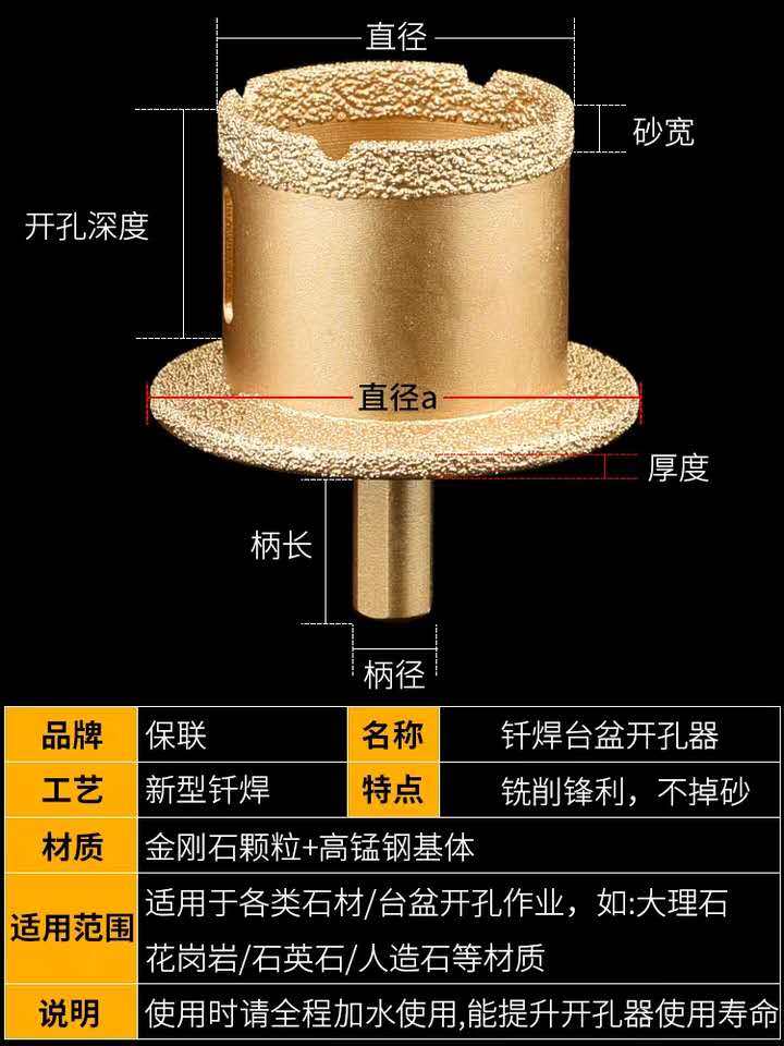 Diamond Terri basin Drilling sewer pipe sink marble material tile washbasin perforated drill with double layer of drill
