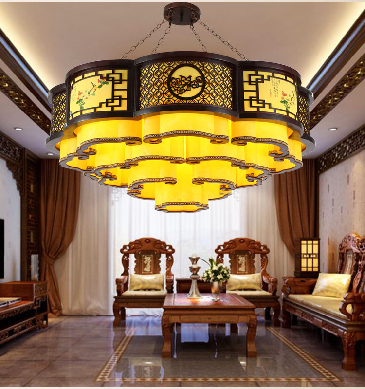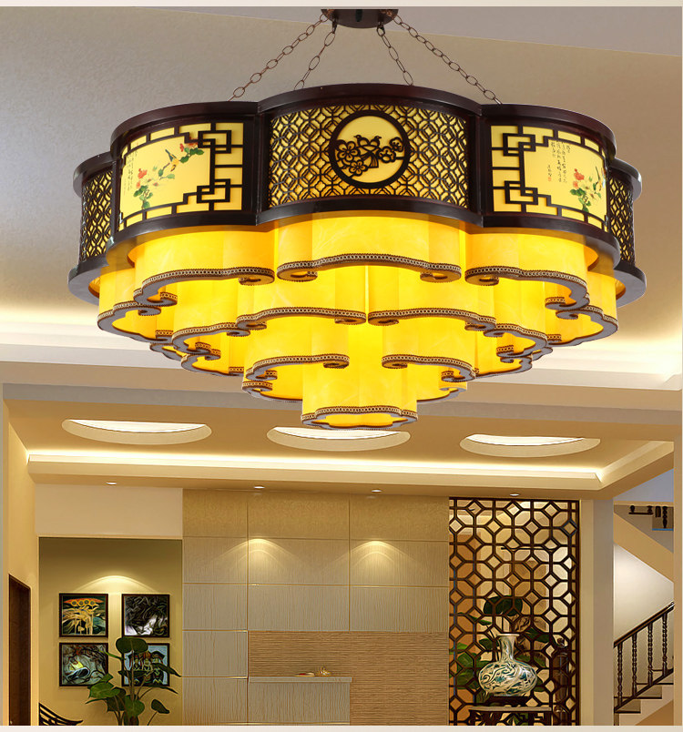 Chinese style pendant light living room lamp solid wood art parchment lamp China Wind Xiang Cloud retro light imitation ancient classic lobby Dining Room Hotel
